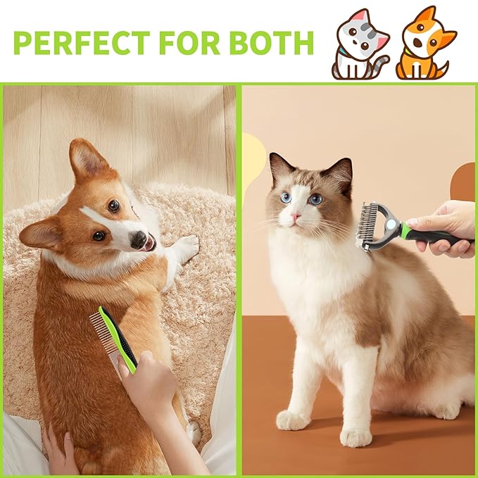 • 【Safe and practical】The stainless steel comb has circular teeth at the end, which is very safe and can massage the skin without scratching or irritating it, so your pet will feel completely comfortable. The inside of the knotting rake is sharp, so you can smoothly pass through the hardest cushions and tangles without pulling your hair. Even the dirtiest knots can be easily untied!