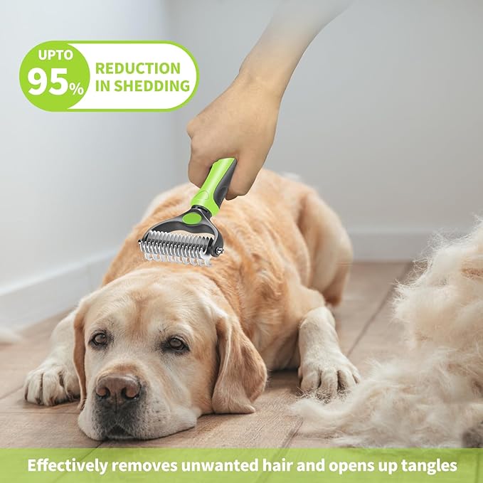 • 【Double sided design】 A double sided bottom fur rake for dogs will be your best choice, even for the longest and densest fur of dogs, cats, rabbits, and long haired pets. Perfect for removing stubborn mats, tangles, and knots, the other side is most suitable for thinning and removing loose hair.