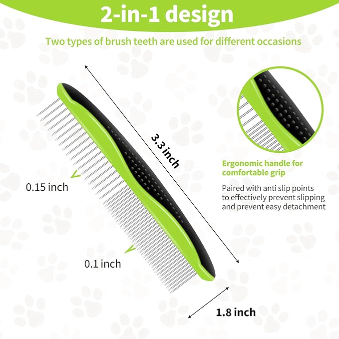 • 【 Comfortable to use 】 Lightweight anti slip rubber handle, comfortable to grip and excellent stability. A dog comb with stainless steel needle teeth can double as a wide toothed comb&a fine toothed comb is an important comb to keep your pet clean and healthy.