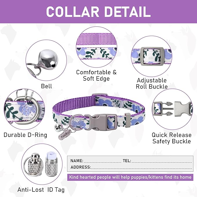 GAMUDA Small Dog Harness Collar and Leash Set, Step in No Chock No Pull Soft Mesh Adjustable Dog Vest Harnesses Plaid Reflective for Dogs Puppy Cats Kitten Rabbit (Purple Flower, XL)