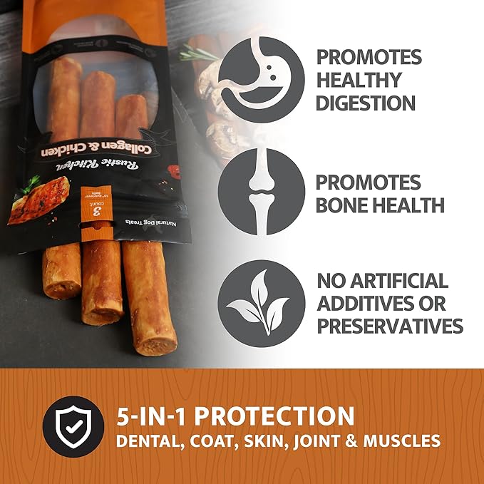 • PREMIUM COLLAGEN TREAT: Rawhide & Bully Stick Alternative with Better Digestibility Providing Essential Health Benefits to Your Pup's Nutrition