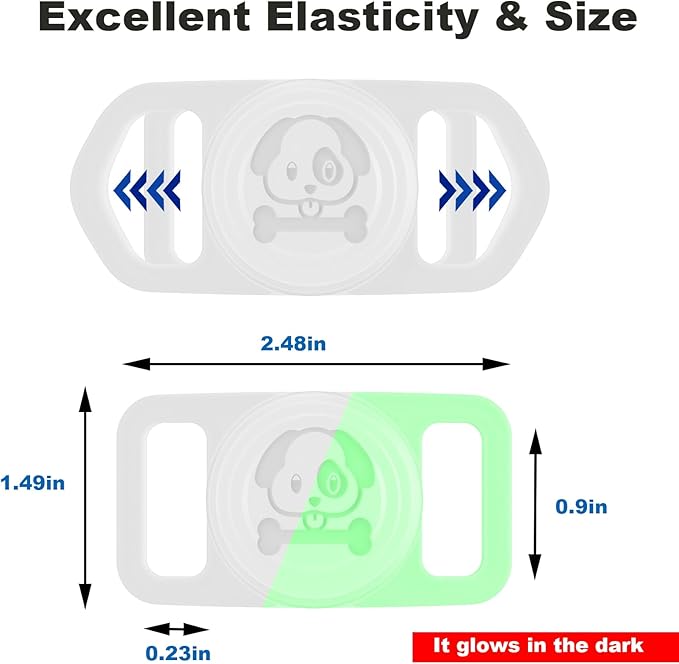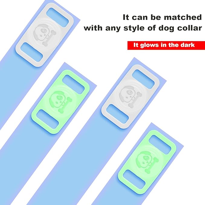 • 【Waterproof design】This Air Tag dog collar waterproof housing is a silicone cap sealed design that is waterproof and impact resistant.It glows in the dark.