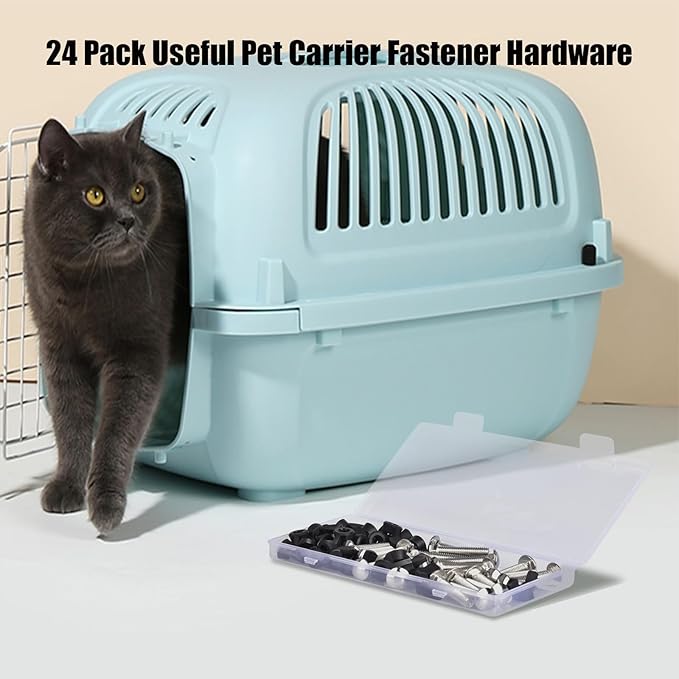 • Useful Plastic Pet Carrier Hardware: You will receive 24 PCS M6 bolts for plastic dog crate and 24 PCS Butterfly nuts in a plastic case, sufficient for replacement and repair in daily life. The kennel replacement bolt length 1.3 inch, diameter approx. 0.23 inch and pls confirm the diameter of the old screws and count the holes on the cat carrier hard shell before placing an order. Carrier Fasteners Kennel Replacement Bolts