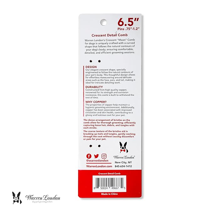 • GROOM LIKE A PRO – Elevate your pet grooming routine with the Copper Crescent Comb by Warren London, designed for precision, comfort, and effortless coat care. Perfect for professional groomers and pet owners alike, this high-performance comb glides smoothly through fur for a sleek, polished finish.