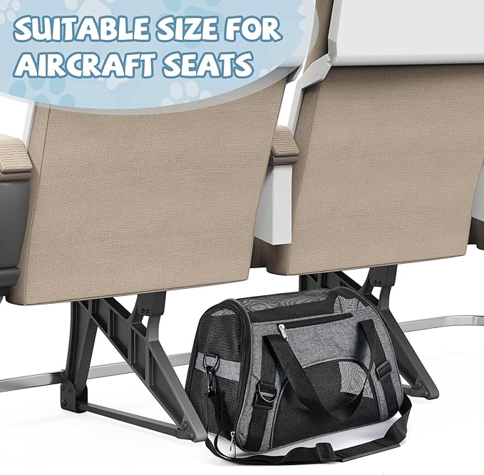 • Breathable Mesh Design: the mesh of the small dog travel carrier provides plenty of ventilation and breathability to ensure your pet stays cool and comfortable during the trip, allowing air to circulate freely and helping your pet stay calm and relaxed inside as well