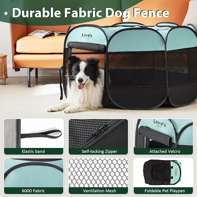 Love's cabin Pet Puppy Dog Playpen, Large Dog Tent Crates Cage Indoor/Outdoor, Portable Playpen for Cat, Foldable Pop Up Dog Kennel Playpen with Carring Case, Removable Zipper Top, Green