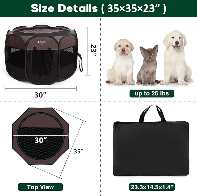 • Multiple Sizes of the Dog Playpen: Small-29x29x17 inches, suitable for small pets up to 10 lbs; Medium-36x36x23 inches,suitable for pets up to 25 lbs; Large-45x45x23 inches,suitable for pets up to 45 lbs. Please Measure your Pets before purchase. All dimensions are measured manually, please allow deviation of 1 inch.