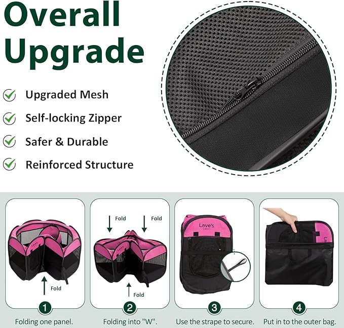 • Easy to Care: Pets can present some unique cleaning challenges, Love's cabin made sure that the dog playpen tent is easy to clean for your convenience.You can also put a blanket underneath, just wash the blanket when it gets dirty. Best for small animals such as a puppy, kitten, dog, cat, bunny rabbit, chicken, ferret, bearded dragon, and even a hamster.
