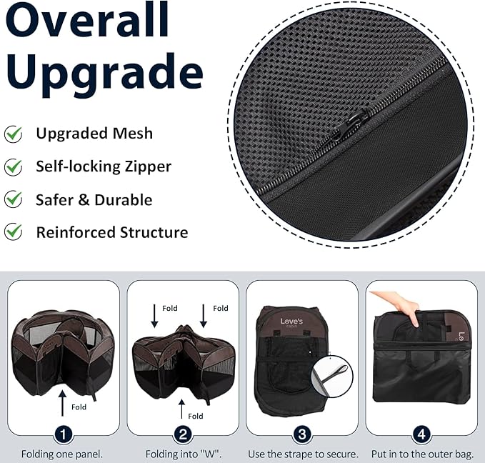 Love's cabin Pet Puppy Dog Playpen, Large Dog Tent Crates Cage Indoor/Outdoor, Portable Playpen for Dog and Cat, Foldable Pop Up Dog Kennel Playpen with Carring Case, Removable Zipper Top, Brown