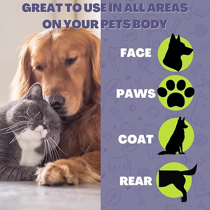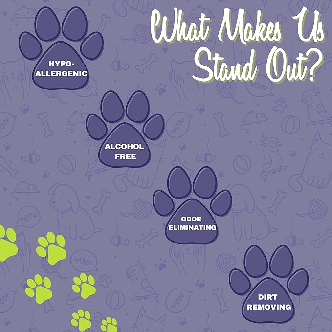 • PET WIPES: Our wipes come in various gentle scents and are hypo-allergenic, alcohol free, and deodorizing.
