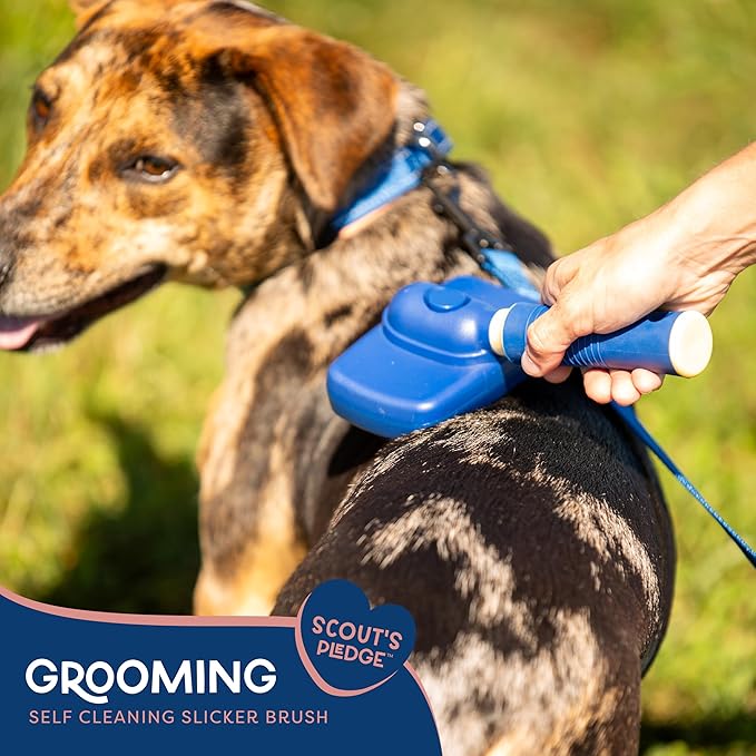 Good Scout Self-Cleaning Slicker Brush, Best Deshedding Tool for Dogs & Cats, Gentle, Safe & Effective Grooming Tool for Long & Short Haired Animals