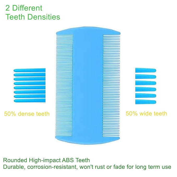 • THOUGHTFUL SET: Our pet grooming comb set includes 5 different kinds of flea combs, 2 tooth comb, 1 double sides lice comb, 1 long-needle & 1 short-needle comb to meet different needs. Perfect for straightening out the knotted tangles hair, as well as finishing and fluffing.