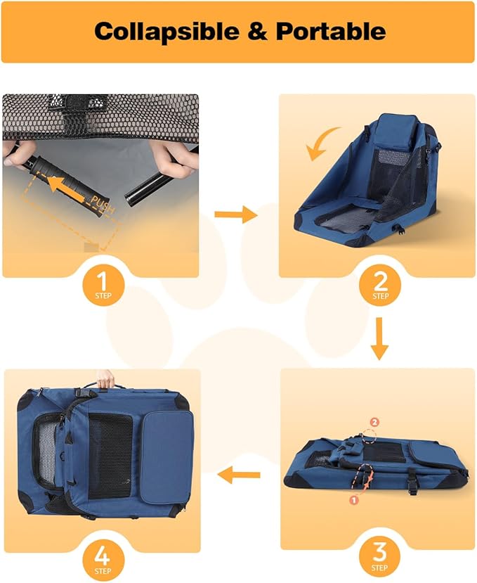 • 【Easy Assembly & Collapsible】This travel dog crate can be effortlessly assembled in 2 minutes, ensuring a stress-free experience for both you and your furry friend. When not in use, its collapsible design allows for compact storage, making it convenient to stow away under a seat or in any other confined space. Elevate your pet travel experience with this innovative and space-saving solution!