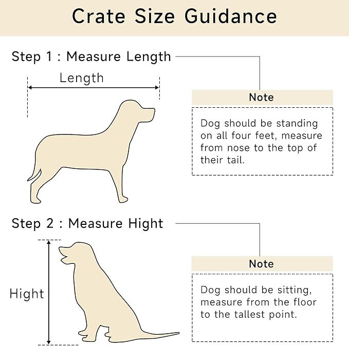 • Choose the Right Size: With an internal size of 19.7''L x 22.8''W x 26.8''H, this dog crate is ideal for medium dogs up to 25 lb. Please measure the size of your dog to ensure it comfortably fits.