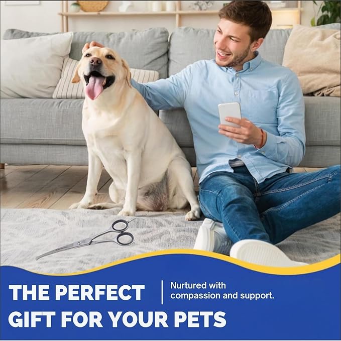 Dog Grooming Scissors, Hair Cutting Shears with Ball Tip Curved,Grooming Scissor for Pet, Scissors for Dogs,Safety Round Tips, Barber Supplies Pet and Saloon Use (Ball CVD 6.5)