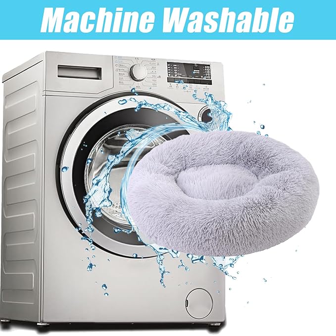 • 【Great Place For A Snooze】This donut dog bed is designed with a raised, cushioned outer furry ring and a plush, padded center, resembling a donuts. The raised sides provide support for your pet’s head and neck, while the soft center offers a warm and comfortable sleeping surface, allowing your pet to have a more comfortable sleep.