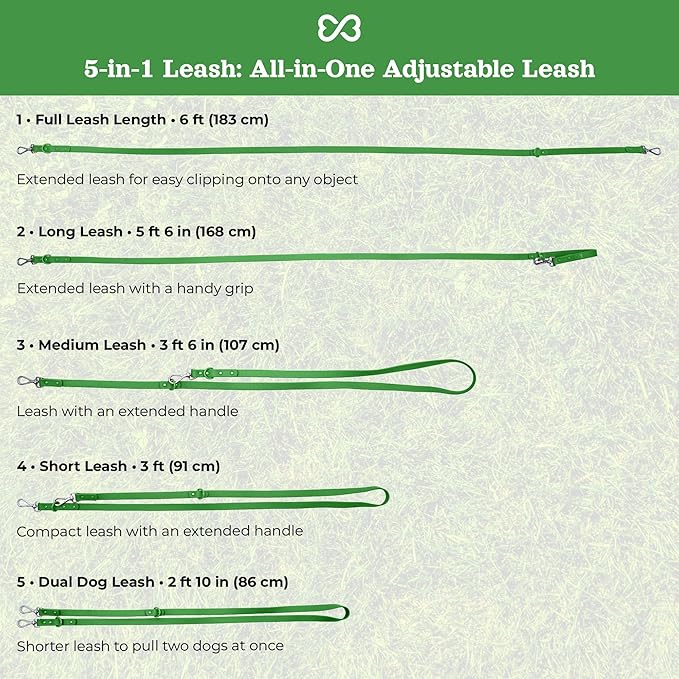 • Versatile Leash Design: Our heavy duty dog leash offers multiple hoop attachments. Choose between a long leash, medium leash, or short leash, or even use it as a hands free dog leash. The handle clip makes it easy to tie up your pet, providing versatility and convenience for every dog outing.