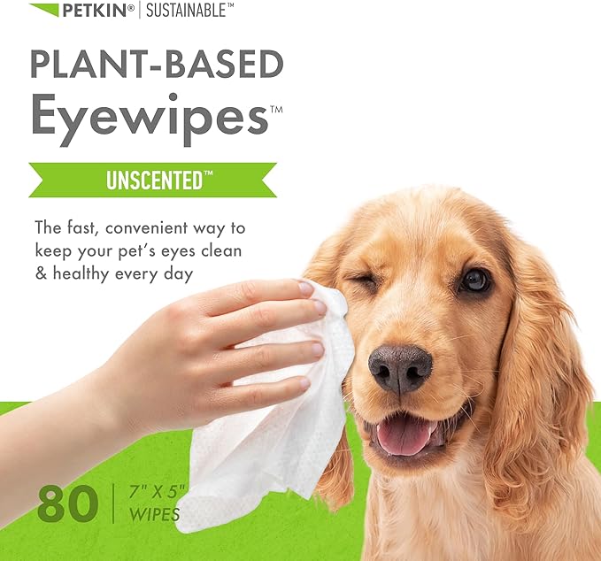• Petkin Plant-Based Eye Wipes For Dogs and Cats - These wipes are made with a thick and strong, USDA Certified Biobased fabric - NO synthetic materials used. So you can care for your pet while caring for the planet. Includes 1 pack of 80 wipes.