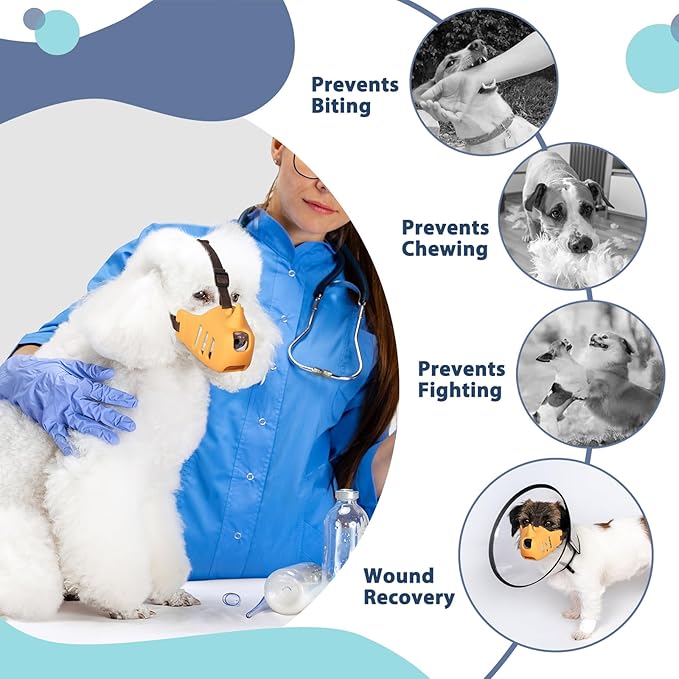 • Unbelievable Comfort-Made of silicone material, this soft dog muzzle is lightweight and easy on the dog's snout. Even during a long day of walking outdoors, your dog won’t have any trouble with chafing issues. This puppy muzzle is suitable for vet visits, grooming, hiking, nail trimming, training, and so on.