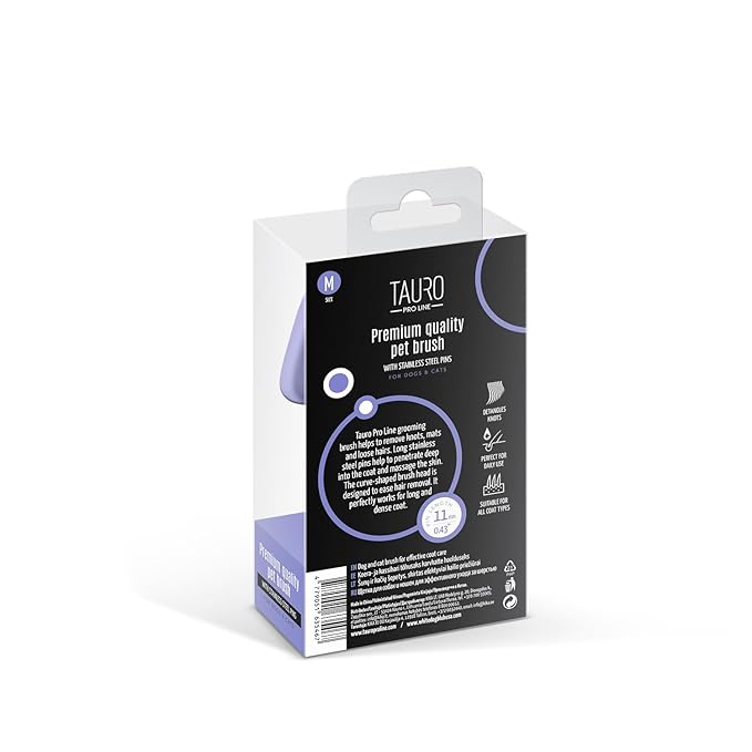 • COAT CARE - The Tauro Proline grooming brush ensures easy grooming for both dogs and cats, thanks to its soft and flexible cushion. The stainless steel teeth glide gently through both short and long hair coats, ensuring a pain-free grooming session every time.