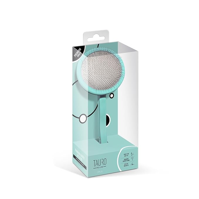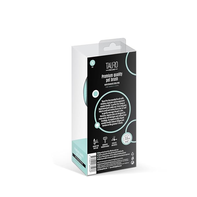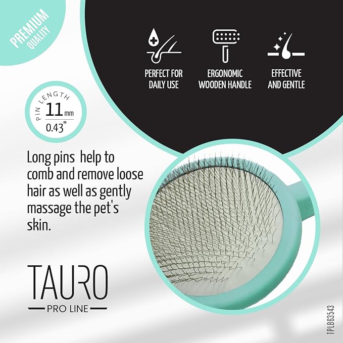 • COAT CARE - The Tauro Proline grooming brush ensures easy grooming for both dogs and cats, thanks to its soft and flexible cushion. The stainless steel teeth glide gently through both short and long hair coats, ensuring a pain-free grooming session every time.