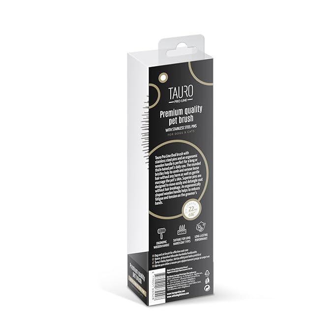 • COAT CARE - The Tauro Proline Wooden Massage Brush ensures a comfortable grooming experience for pets, thanks to its soft, flexible cushion. Each bristle is securely embedded to prevent fallout during brushing, making grooming safe and efficient.