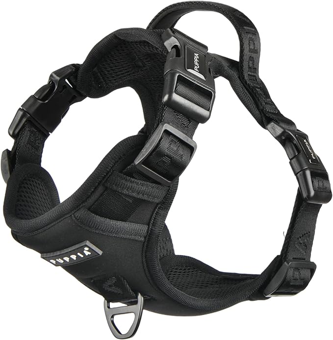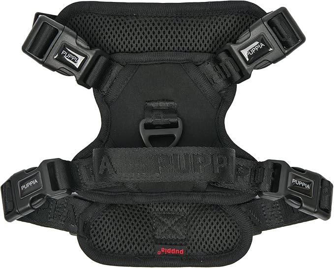 Puppia Jarek Dog Harness H Comfortable Sturdy Handle Adjustable Neck and Chest for Small and Medium Dogs - Black - M
