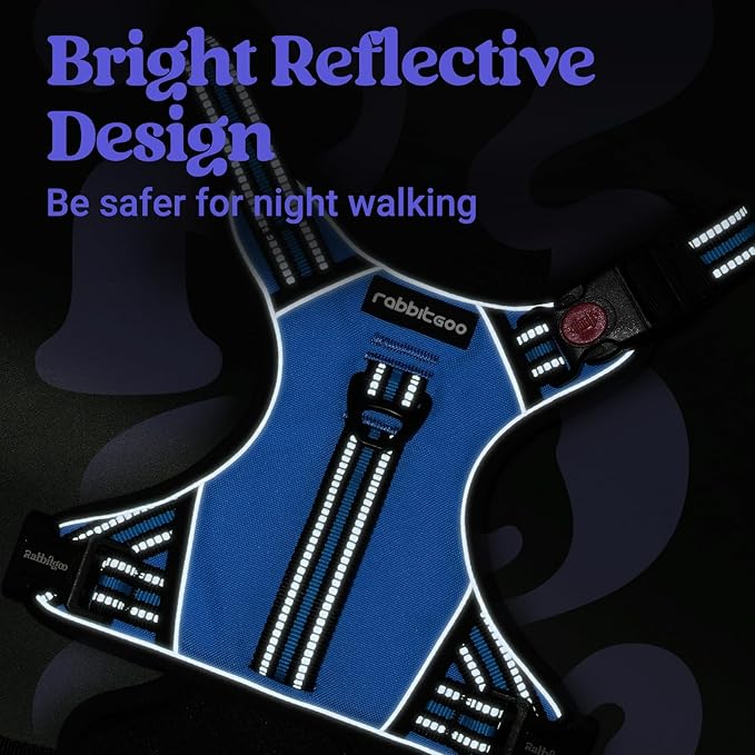 rabbitgoo Dog Harness Medium Sized, No Pull Pet Harness with Soft Padded Handle, Adjustable Reflective Vest with 3 Buckles, Easy Walking Harness with 2 Leash Clips, Light Blue, M