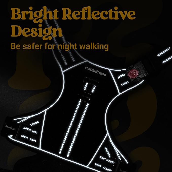 rabbitgoo Dog Harness Small Sized Dog, No Pull Pet Harness with Soft Padded Handle, Adjustable Reflective Vest with 3 Buckles, Easy Walking Harness with 2 Leash Clips, Black, S