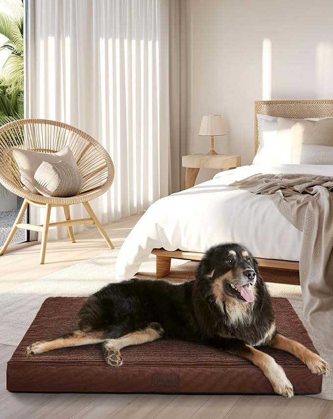 OhGeni 41 Inch Orthopedic Waterproof & Machine Washable Dog Bed with Egg Crate Foam Support, Non-Slip Bottom and Removable Pet Bed Cover for Extra Large, Large, Medium, Small Dogs (Brown)