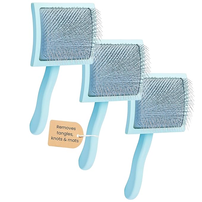 • SUPPORTS WET AND DRY PETS - This dog and cat slicker brush is a must have for long and/or double- coated breeds including Poodles, Goldendoodles, Labradoodles, Pomeranians, Collies, and a wide range of cat breeds with soft, fluffy coats. Recommended Poodle Slicker Brush.