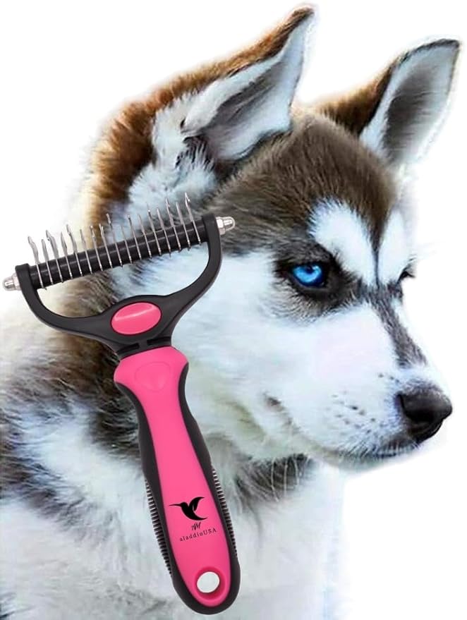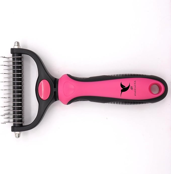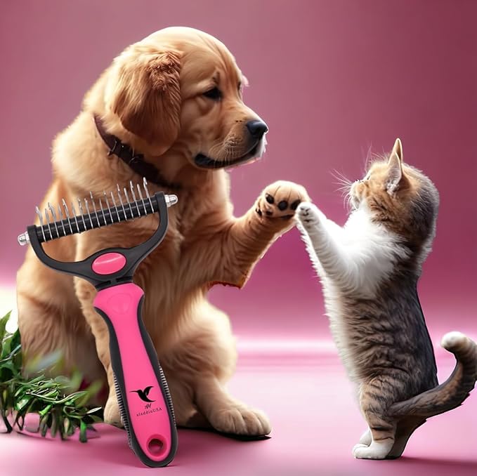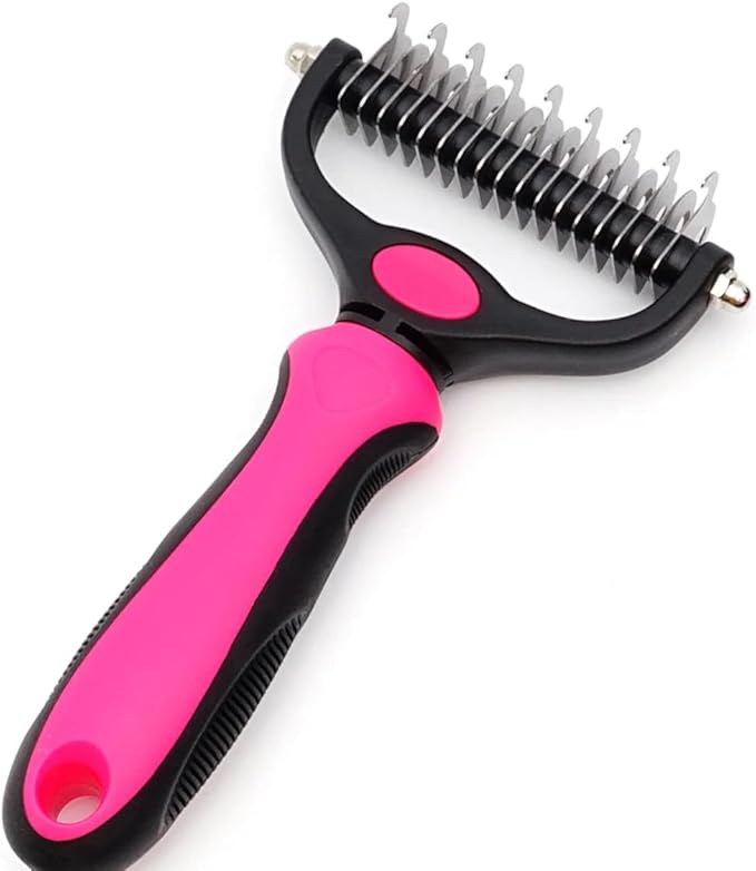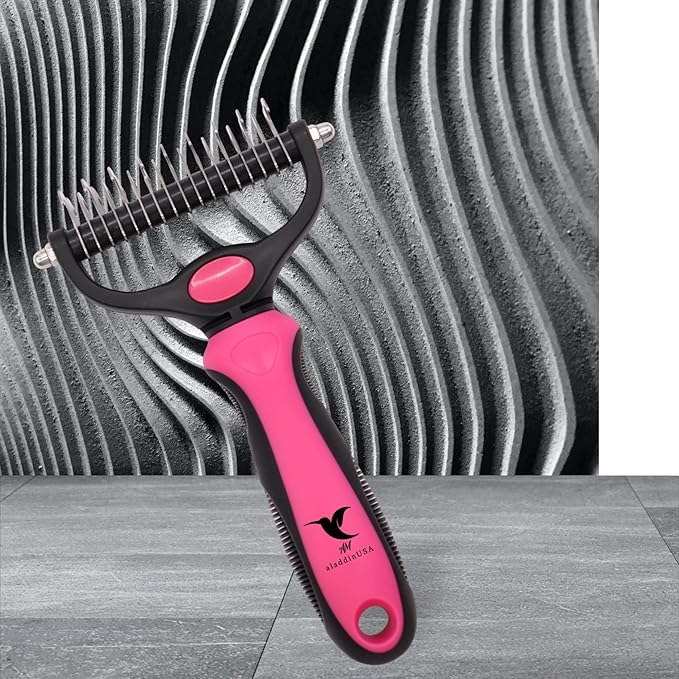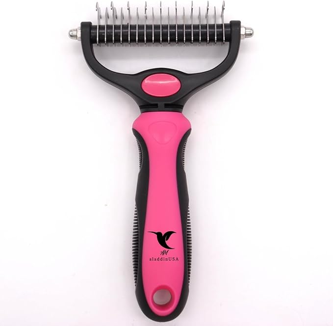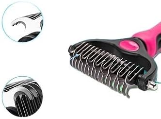 • EXCLUDE TANGLES AND KNOTS: This two-sided brush. One side 9 – teeth and other side with 17- teeth cat and dog undercoat rake for shedding exclude matted fur, tangles, and knots! It’s both sides of our comb for Dogs and Cats thin get rid of loose fur, flakes, and dirt.