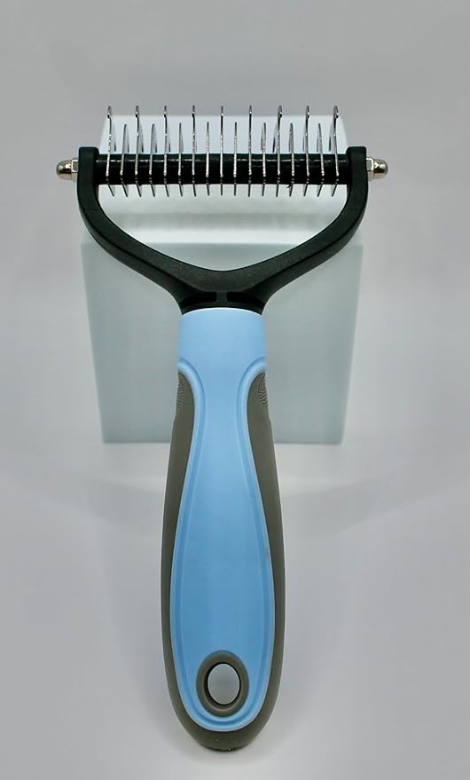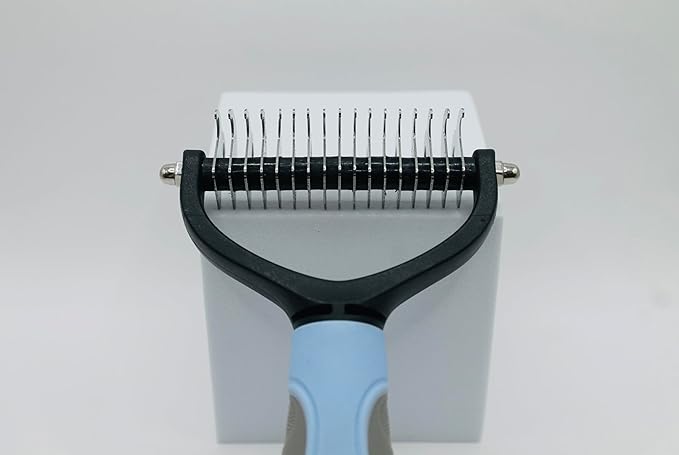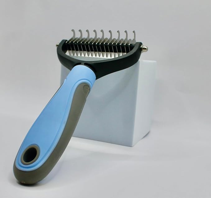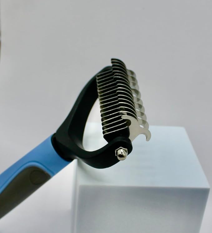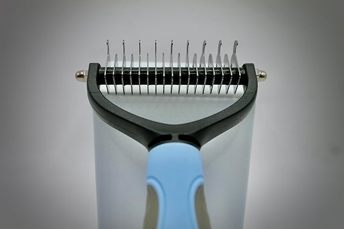 • - All-in-One Cat Dog Undercoat Rake: Dematting and Deshedding: Combines de-matting, de-shedding, and brushing in one tool for a pleasant grooming experience. - Durable Construction: Solid handles provide comfort and durability, making them easy to hold and suitable for all sizes of pets.
