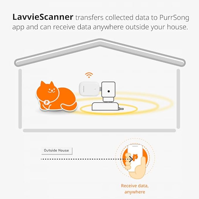 • 😸LavvieScanner Keeps You Connected: When your cat is away from you, LavvieScanner (data transmission device) comes to the rescue. If LavvieTAG is detected within an 8-meter radius of where LavvieScanner is placed, it will transmit activity data via Wi-Fi in four-hour intervals.