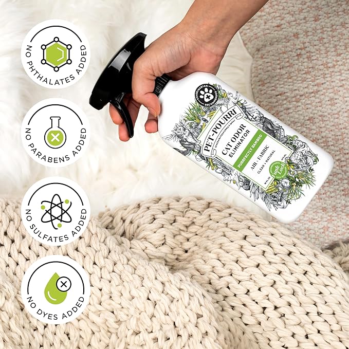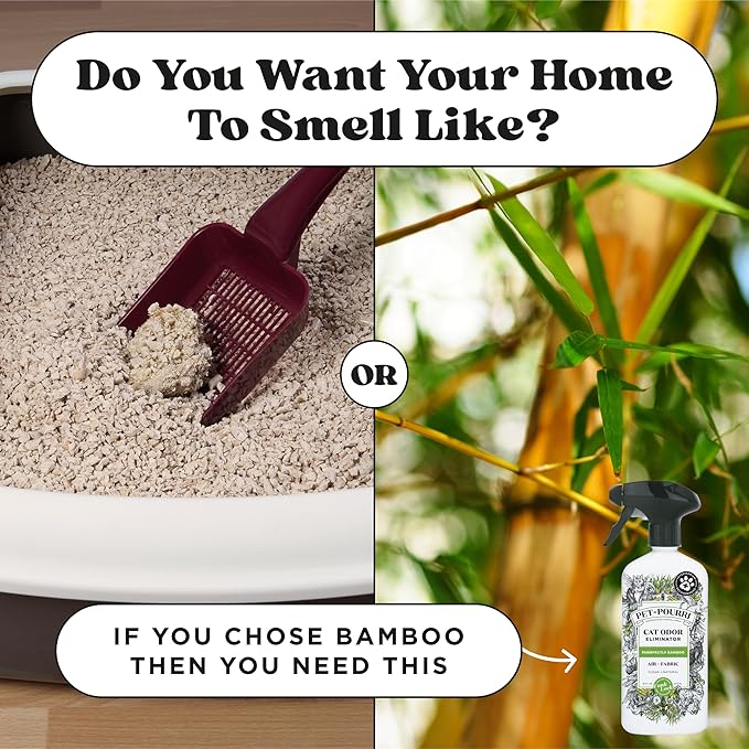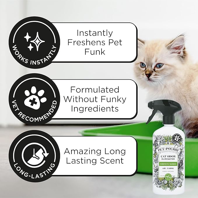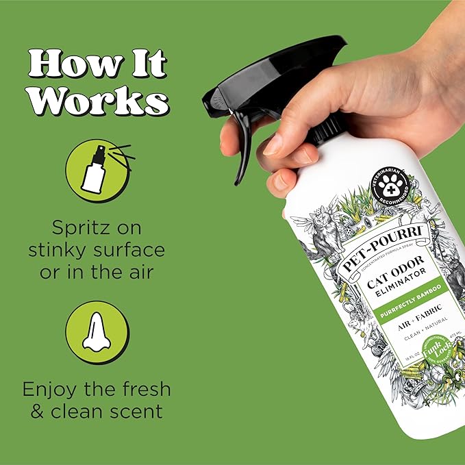 • Instant Freshness, No Lingering Odors: A few sprays of Pourri Purrfectly Bamboo instantly deodorize cat odors, especially strong urine and litter box smells, so your home stays fresh and inviting.