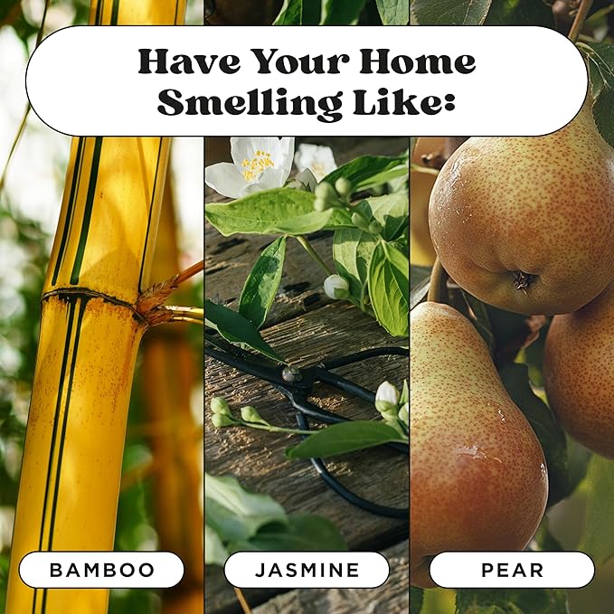 • Light, Refreshing Aromatherapy: The clean, relaxing scent of Bamboo, Jasmine & Pear creates a cozy and fresh ambiance, making your home feel calm and completely pet-funk-free.