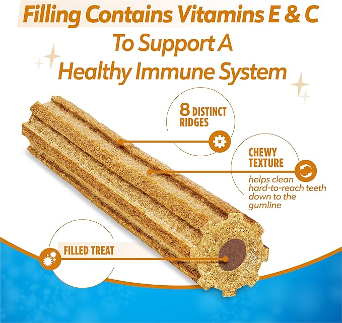 • Dental dog chews with a chewy texture helps clean hard-to-reach teeth down to the gumline and freshen breath