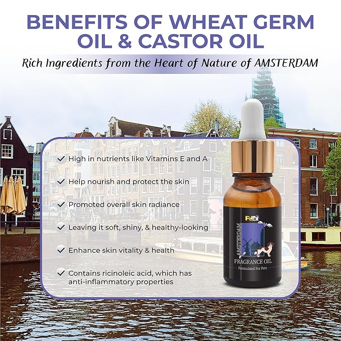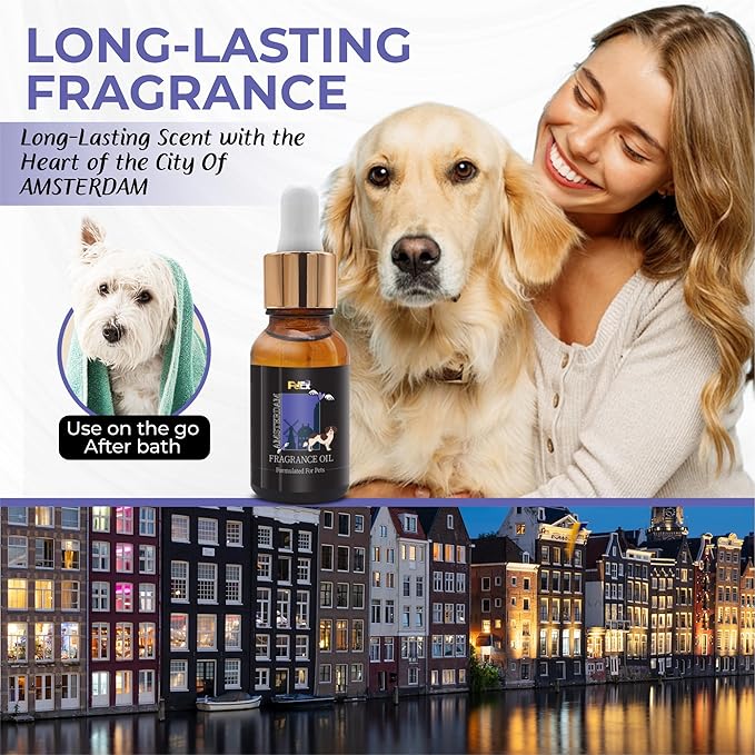 Petex Premium Pet Fragrance Oil | Ultra Premium Natural Pet Care with Dead Sea Minerals | Dog Perfume Fragrance Oil Long Lasting Scent | Natural Pet Cologne - Suitable for Dogs and Cats (Amsterdam)