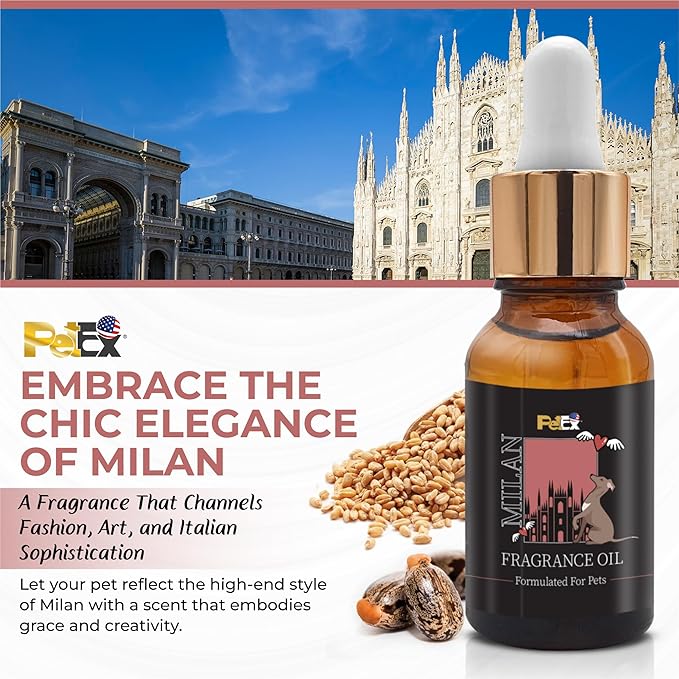 Petex Premium Pet Fragrance Oil | Ultra Premium Natural Pet Care with Dead Sea Minerals | Dog Perfume Fragrance Oil Long Lasting Scent | Natural Pet Cologne - Suitable for Dogs and Cats (Milan)