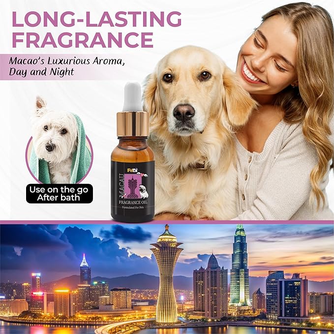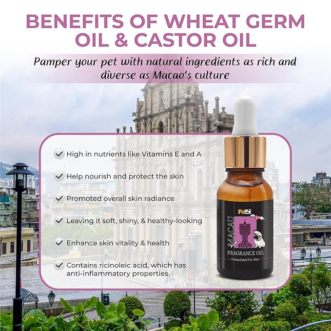 Petex Premium Pet Fragrance Oil | Ultra Premium Natural Pet Care with Dead Sea Minerals | Dog Perfume Fragrance Oil Long Lasting Scent | Natural Pet Cologne - Suitable for Dogs and Cats (Macau)