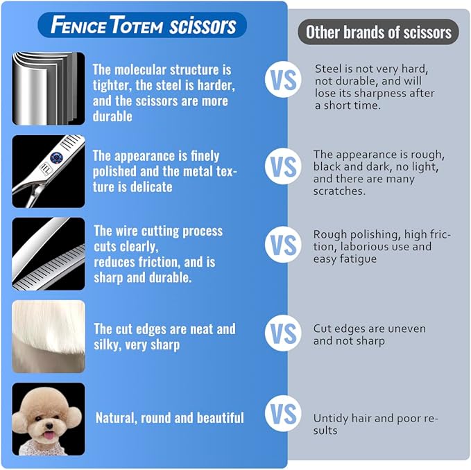 • Features: This pet scissors are available in 7 inches with ergonomic handles, suitable for most people. Finely polished, frosted surface, fine metal texture. precise adjustable screws effectively prevents screws from loosening due to prolonged use