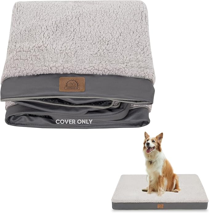 Washable Extra Large Dog Bed Covers Soft Plush Replacement, Waterproof Dog Bed Liner, Pet Bed Cover with Zipper 44x32x3 Inches, Grey, Cover Only