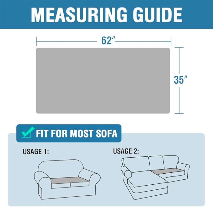 • GREAT FIT: Sold per PIECE. Size measures: 35" x 62". Suitable for almost american style furniture, especially for sofa and bed. In addition, it can also be used in places such as cars, window seats, children's playing floors, and dog cages that require it. Feature one-size-fits-most, kindly measure before ordering. More recommended for cloth sofas, there is greater friction that keeps it in place