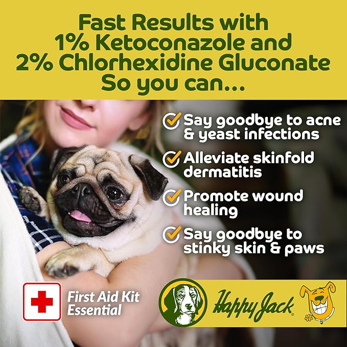 HAPPY JACK KetoHexidine Pet Wipes, Chlorhexidine Pads for Dogs & Cats with Ketoconazole, Cat Wipes for Acne, Wrinkles, Paws, Itchy Skin, 50 Ct
