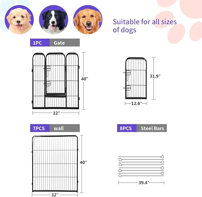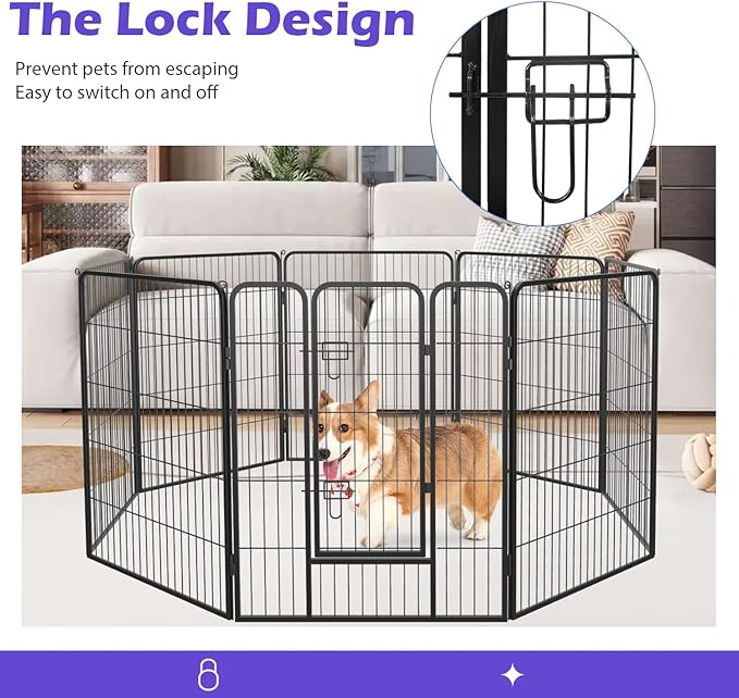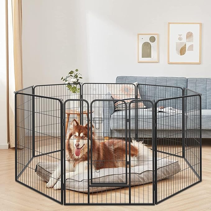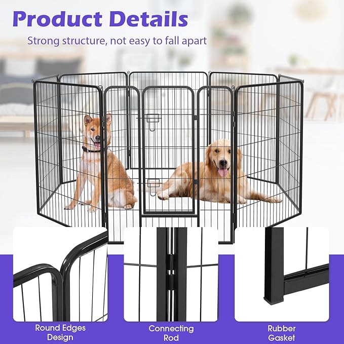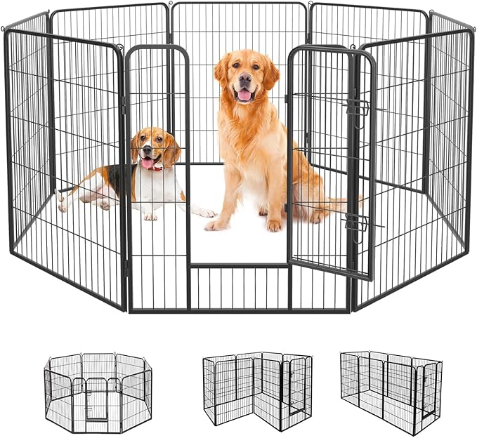 • 🐕【Easy to Install】This dog playpen is a must have for any dog lovers. Quality of our pet playpen constructed with simple assembly instructions will set up in minutes. Our puppy playpen assembles and comes down quickly which is very important as you don't want to be wasting tons of time while enjoying time off. Dog Playpen Dog Pen Dog Fence Puppy Playpen