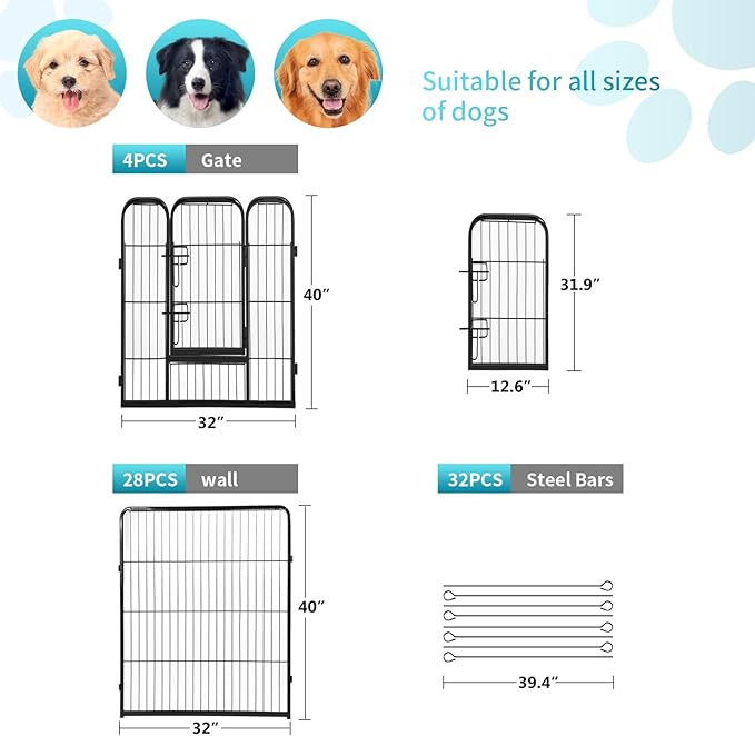FDW Dog Playpen Dog Pen Dog Kennel 32 Panels 40 Inch Hight Indoor Outdoor Folding Metal Portable Puppy Exercise Pen Heavy Duty Dog Fence for Yard Camping,Black