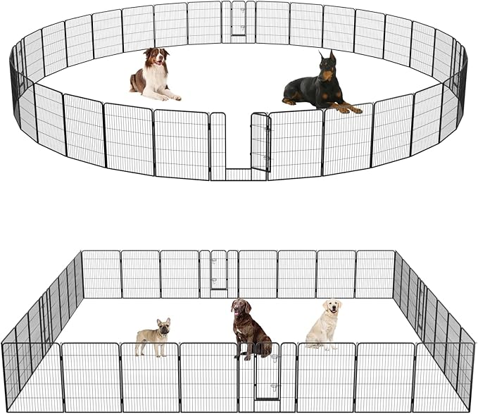 • 🐕【Easy to Install】This dog playpen is a must have for any dog lovers. Quality of our pet playpen constructed with simple assembly instructions will set up in minutes. Our puppy playpen assembles and comes down quickly which is very important as you don't want to be wasting tons of time while enjoying time off. Dog Playpen Dog Pen Dog Fence Puppy Playpen