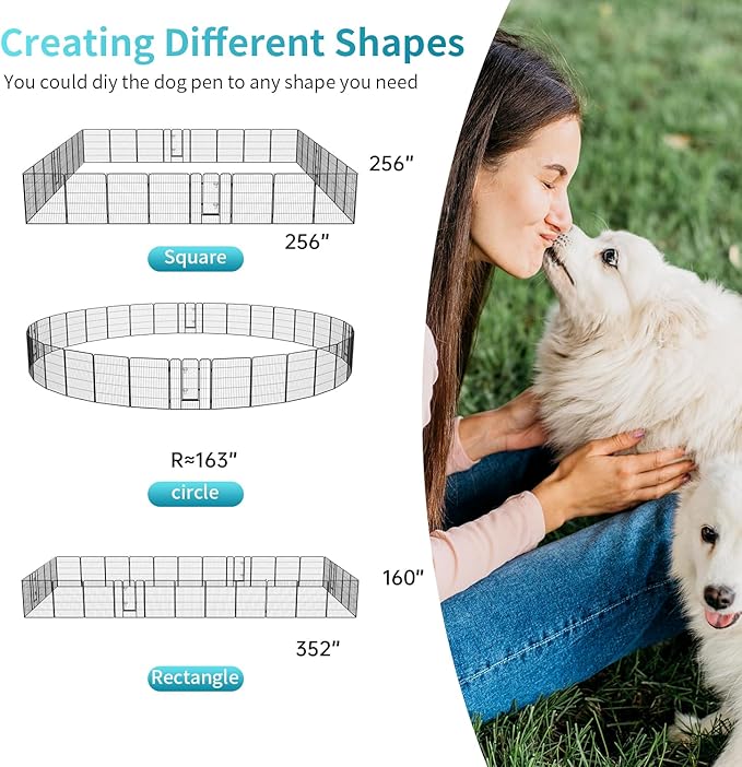 • 🐕【Change to Multiple Shape Easily】Our puppy playpen design allows for multiple shape configurations to meet your needs, such as the shape of rectangle, square or octagon. This dog playpen will be ideal for any pet lover. If you have any questions about our pet playpen, please feel free to contact us. Dog Playpen Dog Pen Dog Fence Puppy Playpen