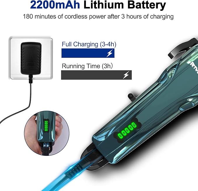• Wireless large capacity battery design: This Petworthy pro dog clippers is equipped with fast charging technology. Built-in 2000mAh High Capacity Li-ion Battery, charging for 1-2h hours and can sustain use of 3 hours.Cordless design allowing you to freely move in any direction, easy to handle the hard-to-reach spots.