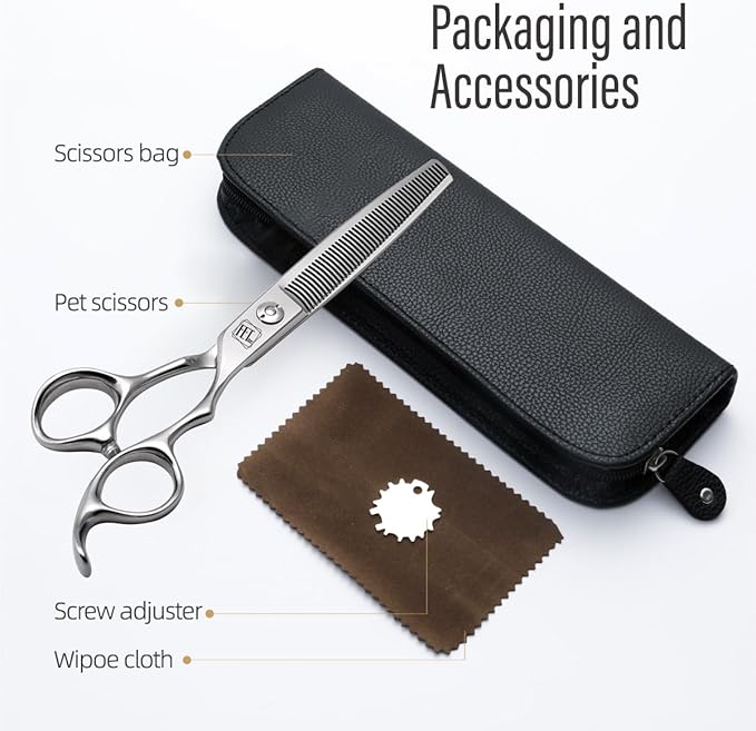 • Features: This pet blender scissors are available in 6.5 inches with ergonomic handles, suitable for most people. Finely polished, frosted surface, fine metal texture. precise adjustable screws effectively prevents screws from loosening due to prolonged use